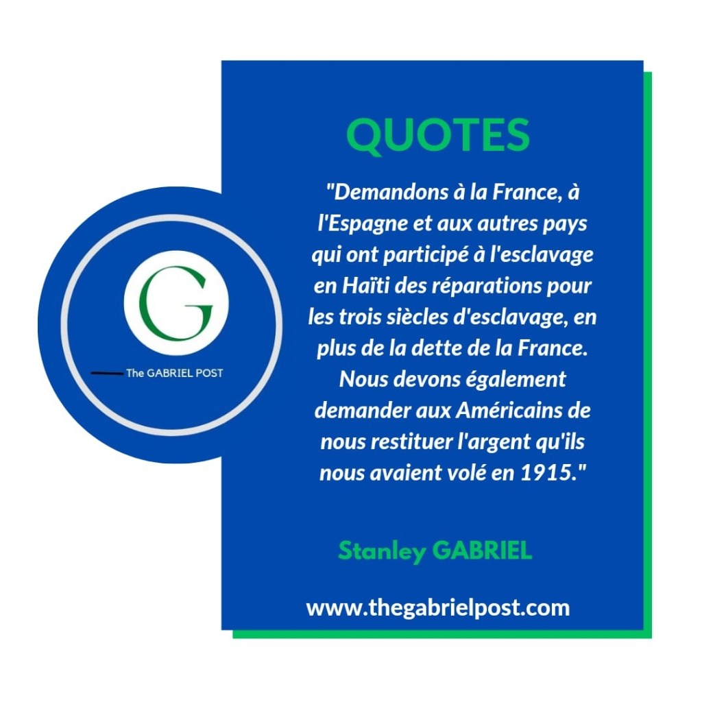 Demandons à la France, à l’Espagne et aux autres pays qui ont participé à l’esclavage en Haïti des réparations pour les trois siècles d’esclavage, en plus de la dette de la France. Nous devons également demander aux Américains de nous restituer l’argent qu’ils nous avaient volé en 1915.