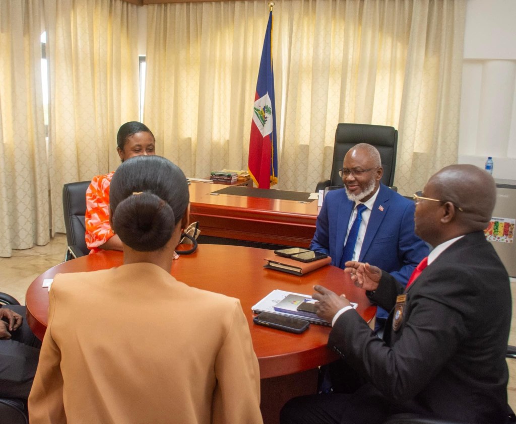 Le Conseiller-Président Emmanuel Vertilaire a reçu, le mardi 22 octobre 2024, Jean Judson Joseph, Dorveline Pierre-Louis, Abraham Jacques, Marie Guerline, Magdala Jean Baptiste et Lovely Joseph Bélizaire, un groupe d’étudiants de l’Université Quisqueya.
