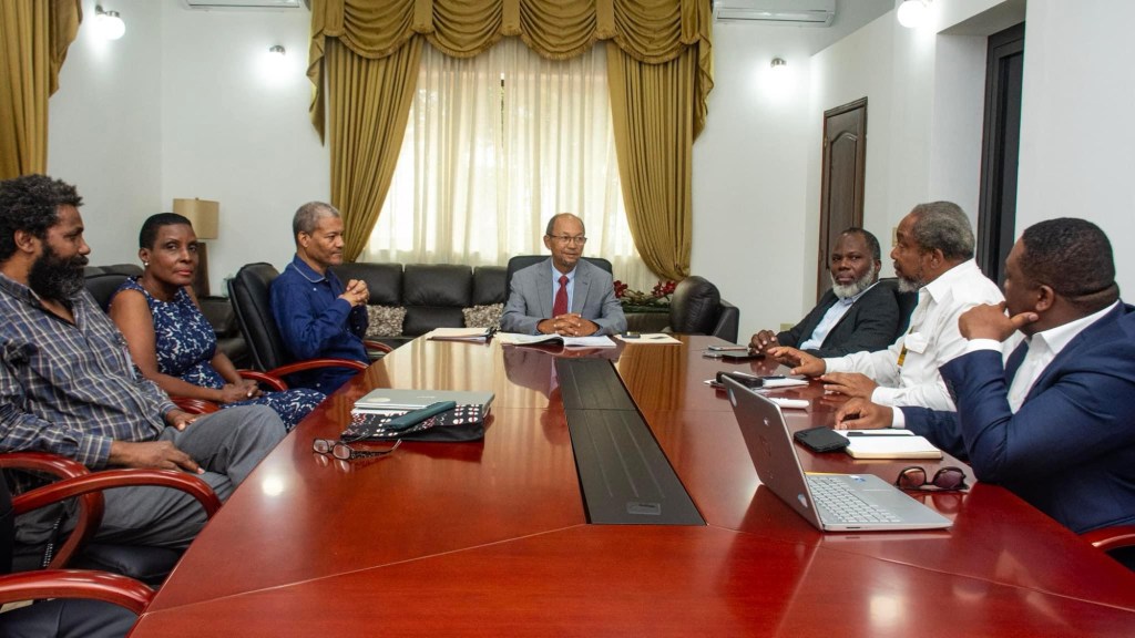 Le Président du Conseil Présidentiel, Leslie Voltaire, a récemment rencontré les représentants du Comité National Haïtien sur les Restitutions et Réparations (CNHR), parmi lesquels figuraient le Recteur de l’Université d’État d’Haïti (UEH), M. Fritz Deshommes, Mme Myrtha Désulmé et Jhon Picard Byron. L’objectif principal de cette rencontre était de discuter des recommandations émises par le CNHR concernant les démarches diplomatiques avec la France sur les questions de restitutions et réparations liées à la dette historique imposée à Haïti.