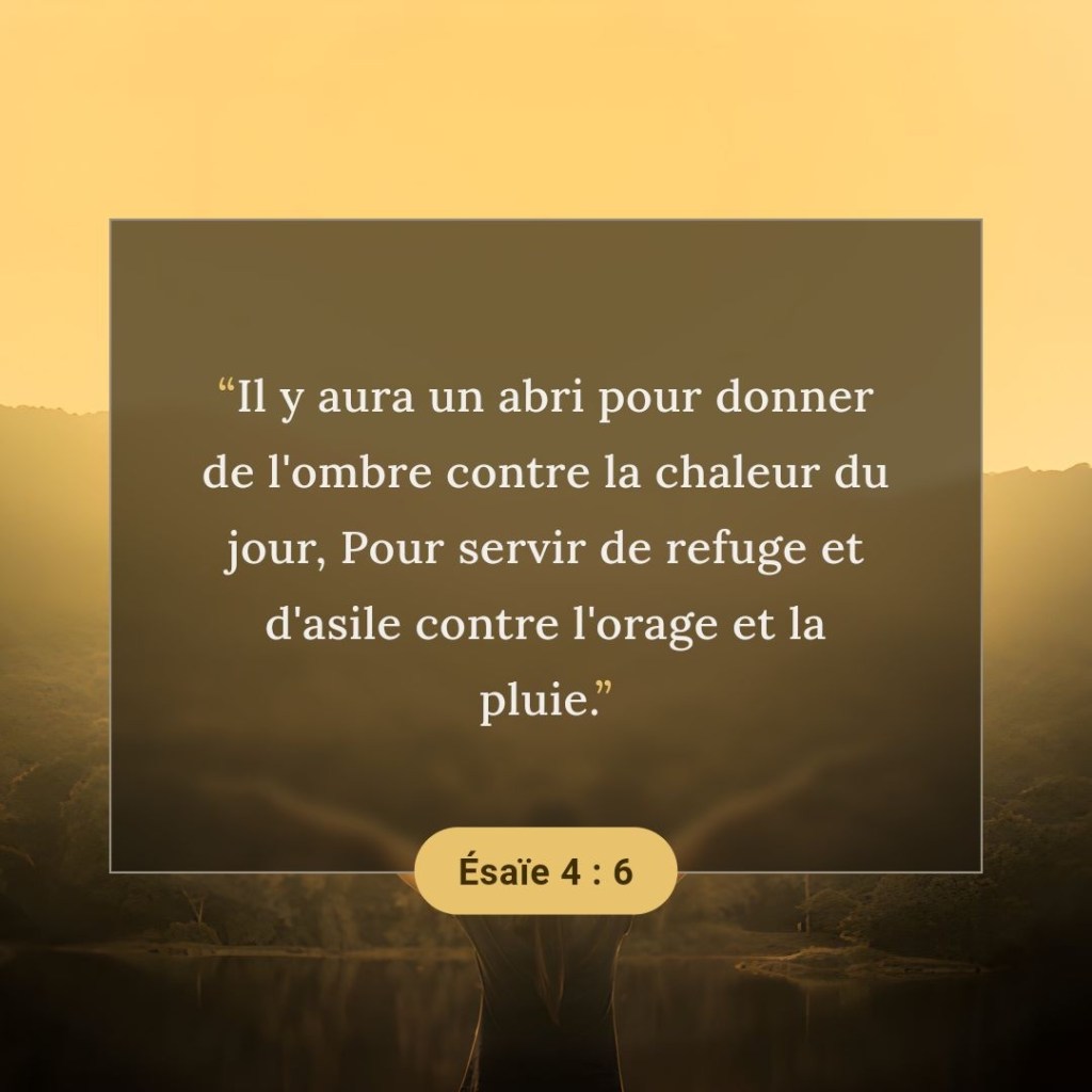 Mais dans cette parole d’Ésaïe 4:6, Dieu nous rappelle qu’il demeure un refuge, un abri, une couverture invisible mais réelle. Ce n’est pas un simple toit en tôle ou une tente sur un sol étranger , c’est la présence de Dieu Lui-même qui vient couvrir son peuple. Il est l’ombre contre la chaleur accablante de l’injustice, le refuge contre les orages de la discrimination, l’asile contre les pluies de l’angoisse et du rejet.