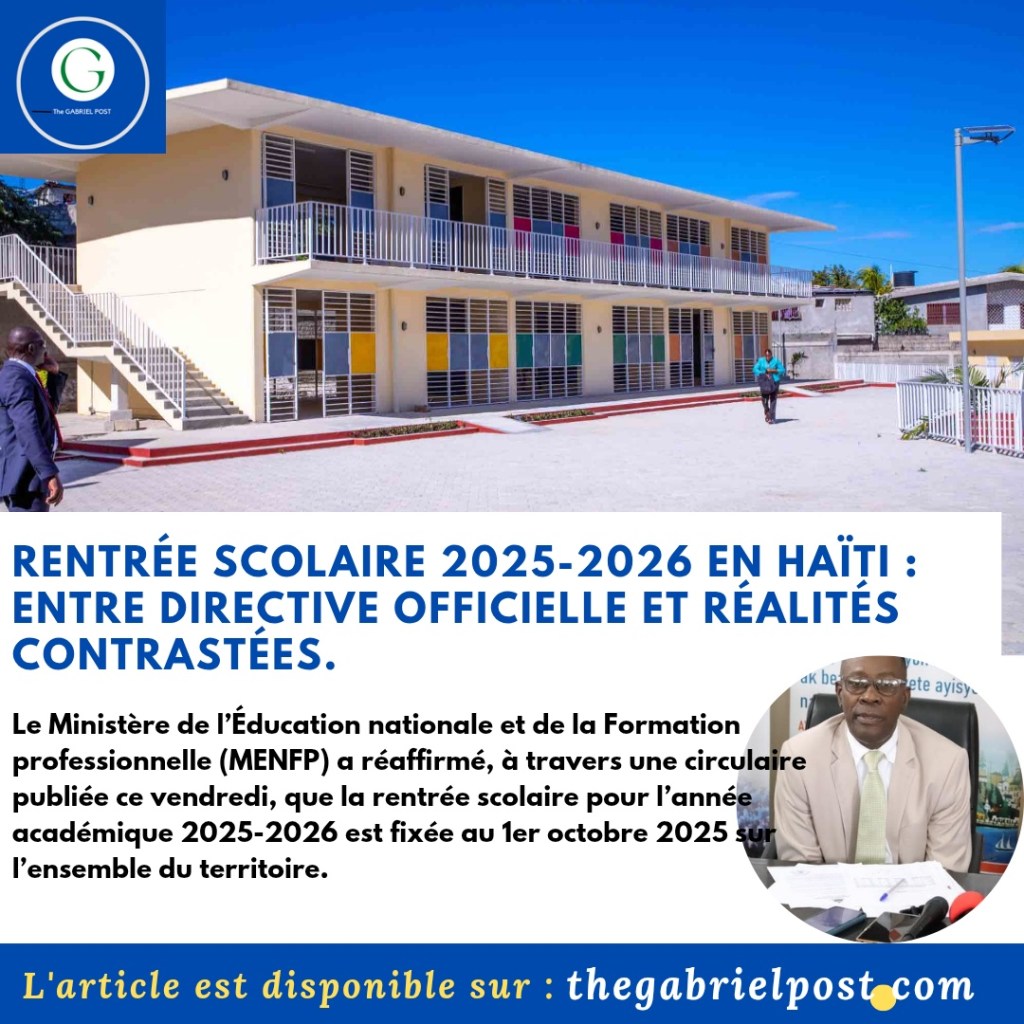 Le Ministère de l’Éducation nationale et de la Formation professionnelle (MENFP) a réaffirmé, à travers une circulaire publiée ce vendredi, que la rentrée scolaire pour l’année académique 2025-2026 est fixée au 1er octobre 2025 sur l’ensemble du territoire. Cette mesure, signée par le Directeur général Yves Roblin, concerne toutes les écoles du pays, qu’elles soient publiques, privées, confessionnelles, communautaires ou autonomes.