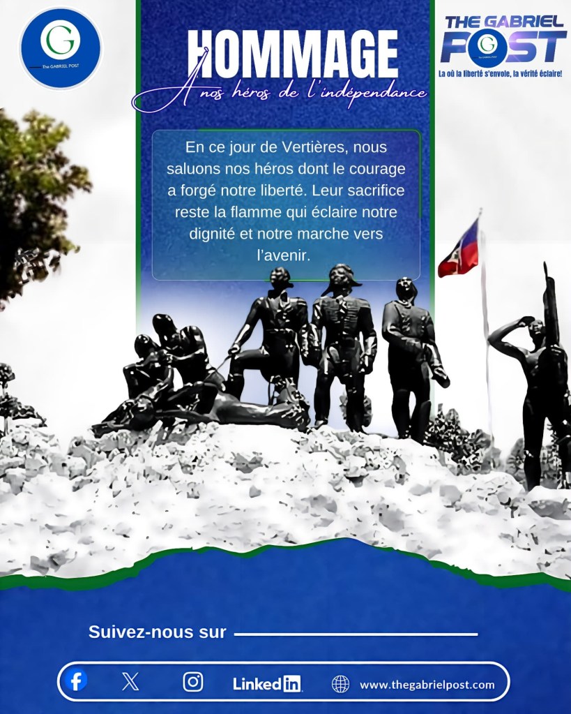 En ce jour de Vertières , nous saluons nos héros dont le courage a forgé notre liberté. Leur sacrifice reste la flamme qui éclaire notre dignité et notre marche vers l’avenir.