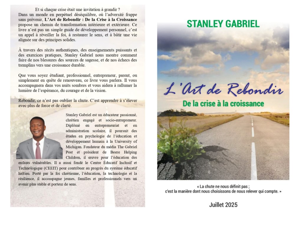 Stanley GABRIEL , auteur du livre « L’art de rebondir : de la crise à la croissance » participera au Salon du Livre de Port-au-Prince ce 12 décembre au Restaurant La Réserve.